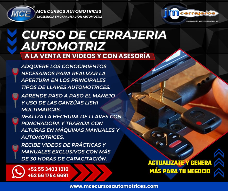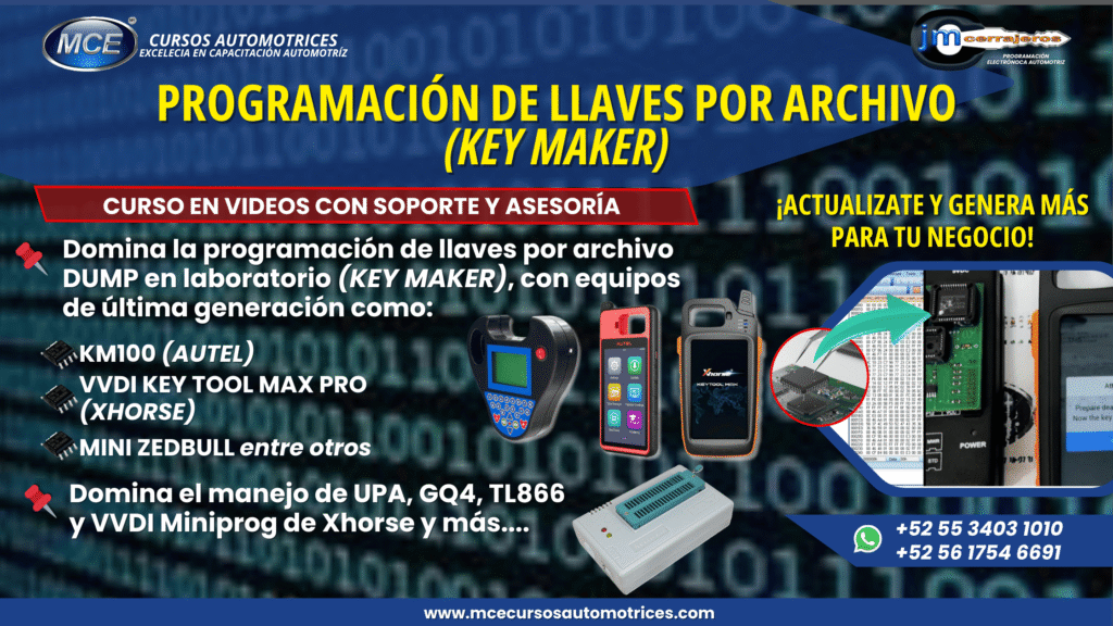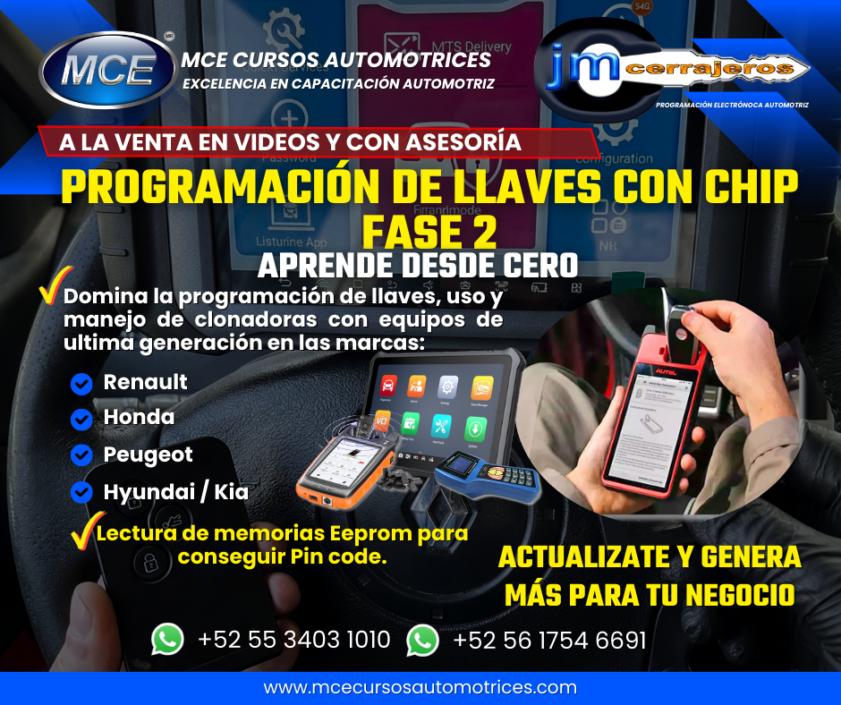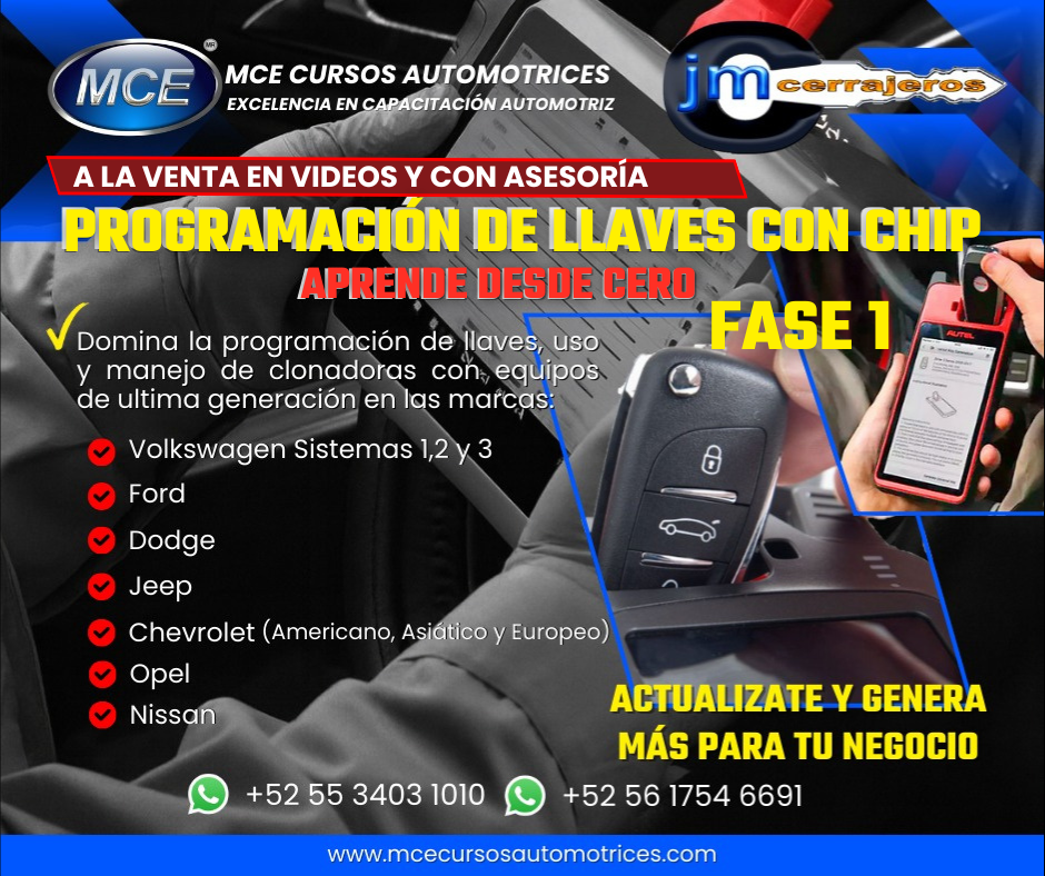 Curso de Programación de Llaves con Chip Fase 1 desde Cero paso a paso, éste curso lo puedes comprar en videos y clases grabadas guiadas totalmente explicativas. Puedes estudiar a tu ritmo, son mas de 40 horas de Formación Técnica. ¡Lo compras y lo disfrutas!