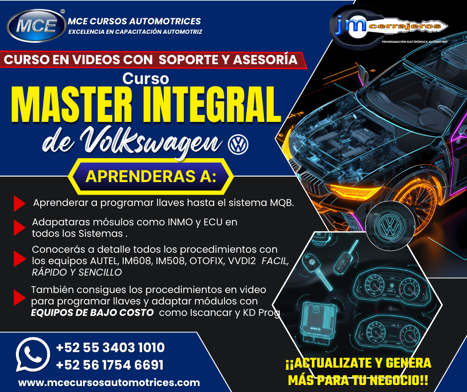 Curso de Programación de Llaves con Chip Fase 1 desde Cero paso a paso, éste curso lo puedes comprar en videos y clases grabadas guiadas totalmente explicativas. Puedes estudiar a tu ritmo, son mas de 40 horas de Formación Técnica. ¡Lo compras y lo disfrutas!