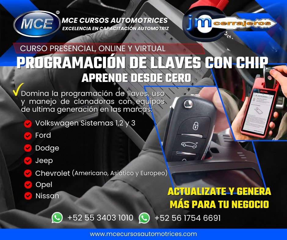 Curso de Programación de Llaves con Chip desde Cero y paso a paso, éste curso lo puedes conseguir en tres modalidades: